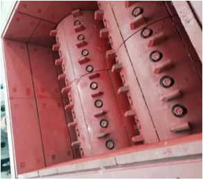 齒輥破碎機(jī)由單臺或者多臺電機(jī)帶動破碎機(jī)兩側(cè)的皮帶輪轉(zhuǎn)動,使齒輥?zhàn)鱿嘞蜣D(zhuǎn)動,物料尺寸如達(dá)到兩齒輥見的縫隙要求則該物料自動落下,大于兩齒輥的物料在齒輥上受到組合破碎(劈、搓折、擊)直至達(dá)到所需粒度的要求為之。