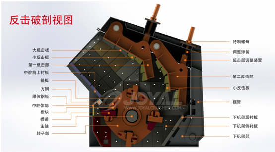 目前市場中有折線形的反擊板和圓弧形的反擊板。各級反擊板的角度對各級反擊板的角度對物料撞擊反擊板產(chǎn)生有效破碎力影響較大,同時對物料發(fā)生沖擊與剪切破碎的效果影響也較大。